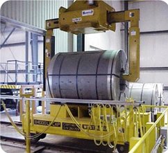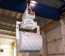 Bushman AvonTec također isporučuje hvataljke namota za automatsko manipuliranje namotima. Slika prikazuje jednu od dvije 42 tonske hvataljke namota na potpuno automatiziranom kranu za namote kako utovaruje namota na teretno vozilo.